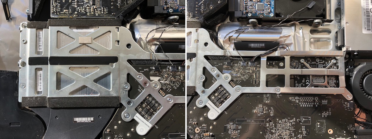 제 노트북과는 달리, 아이맥의 thermal paste들은 완전히 굳지 않았습니다. 오히려 여전히 원래 모습 그대로 간직하고 있었습니다. 그래서 아이맥에서는 발열 문제가 없었나 봅니다.