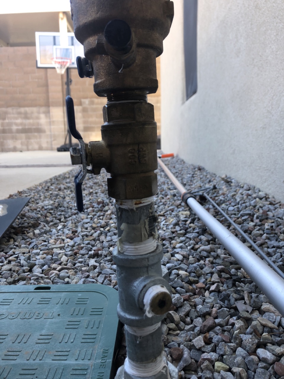 그리고 백야드를 둘러보니 겨우내 망가진게 한 두개가 아닙니다. 스프링클러도 제대로 물을 안뺐더니 아니나 다를까 파이프가 깨져서 물이 샙니다.