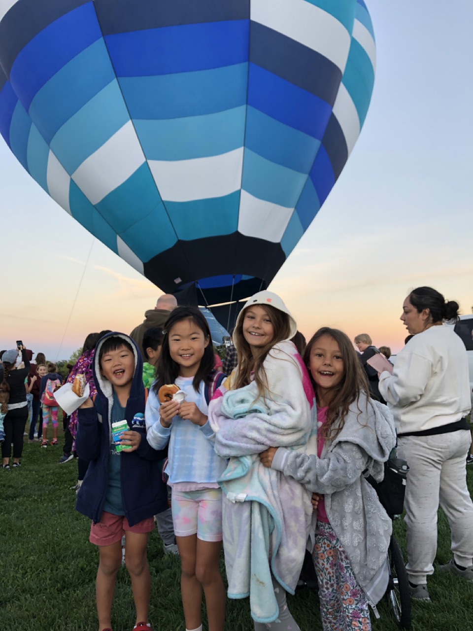 마침 생일날 아침에는 2022년 알버커키 국제 열기구 축제의 시작을 알리는 행사가 있었습니다. 축제의 첫날 아침 7시부터 이 지역 초등학교들에서 열기구에 바람을 넣는 행사인데요, 우리 아이들 학교에서도 하길래 아침에 가서 구경했습니다.