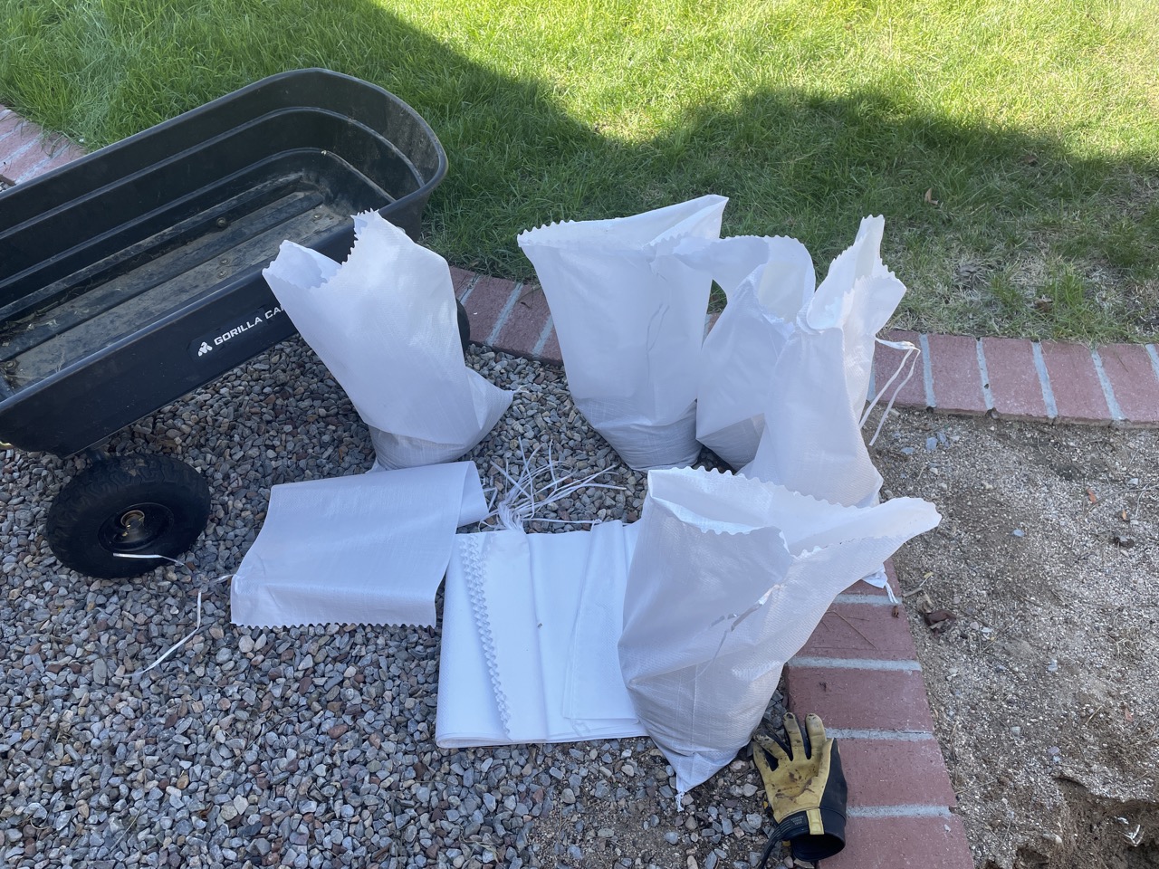 그렇게 열심히 모래를 퍼 담고, 얼추 필요한 만큼의 모래주머니를 만들었습니다.