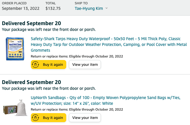 이런식으로 한다면 재료값은 $133로 막을 수 있습니다. 그리고 위 사진처럼 물을 넣는 방식이 아니라 그냥 모래주머니를 쓰기로 했습니다. 보기엔 안좋겠지만, 백야드에 있는 모래를 재활용하면 모래값은 아낄 수 있습니다.